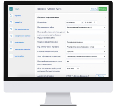Удобный интерфейс для перевозчика со всей необходимой информацией.